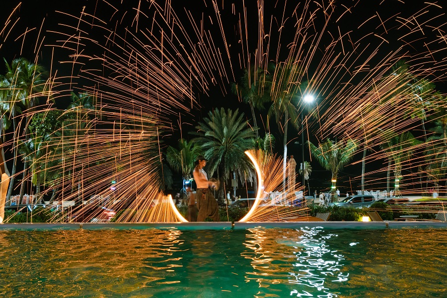 The evening’s entertainment is underscored by an enthralling 20-minute fire show packed with high-impact tricks and choreography.